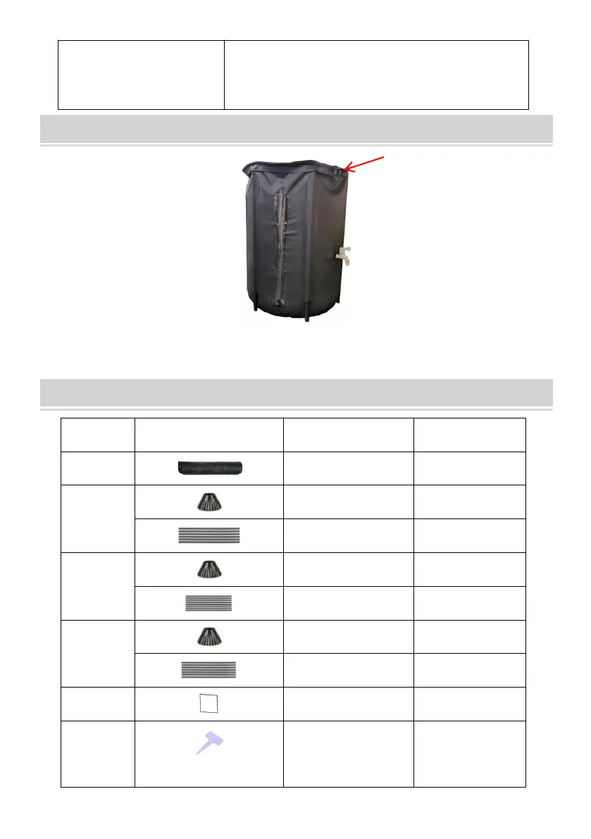 4. Espacio de desbordamiento 5. Escala 6. Salida central 7. Pie de apoyo