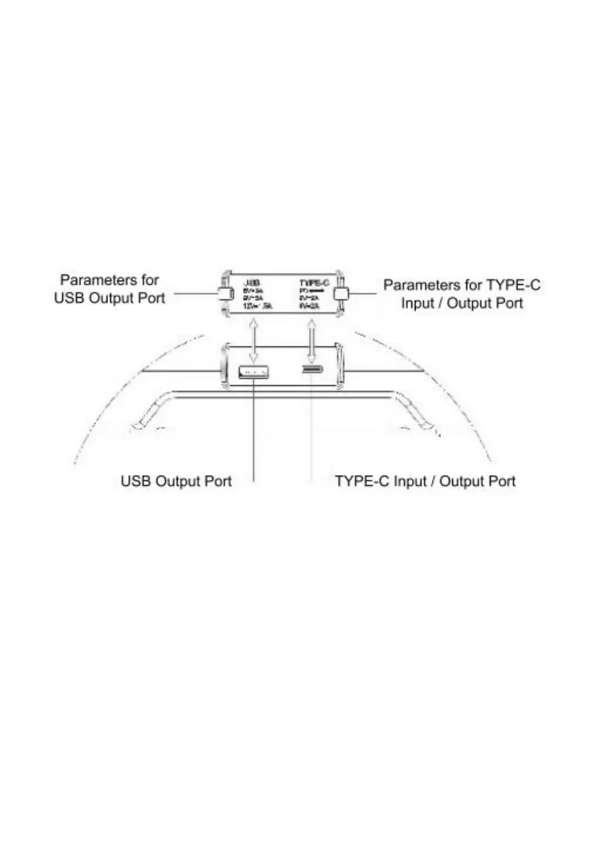 4. Fonction de charge/batterie externe Ports d'entrée/sortie :