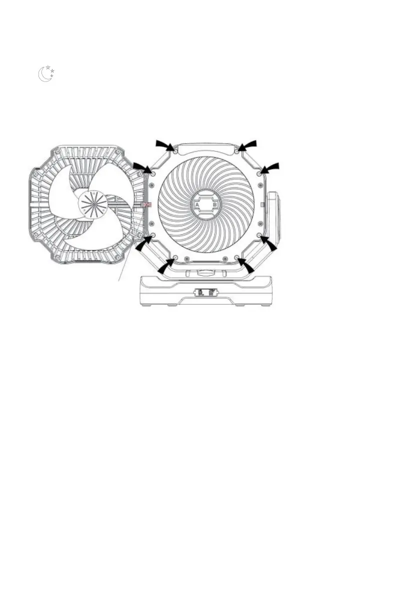 1. Spegnere la ventola, posizionare la ventola sul retro, estrarre le 8 viti