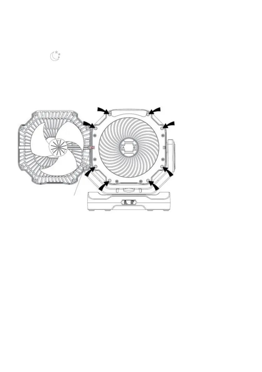 1. Apague el ventilador, colóquelo en la parte posterior y retire los 8