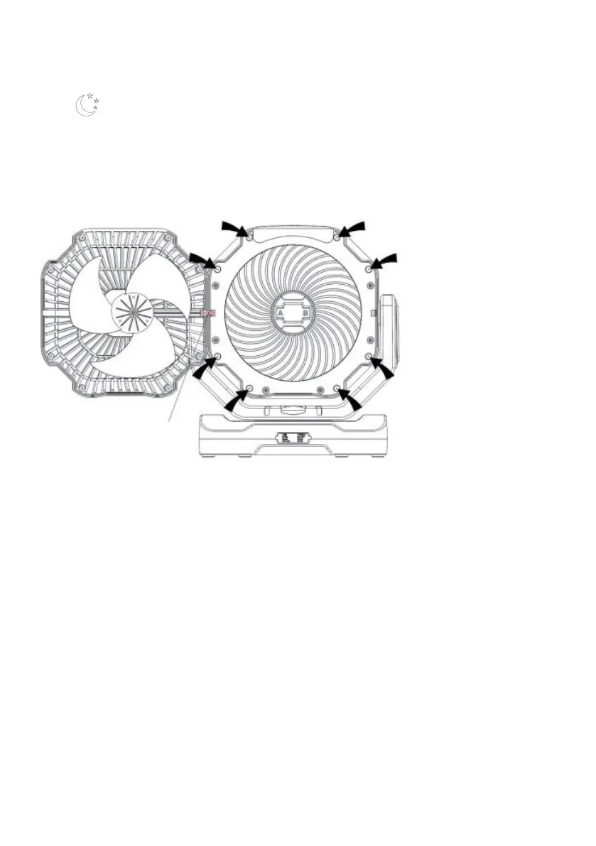 1. Schakel de ventilator uit, plaats de ventilator plat op de achterkant en