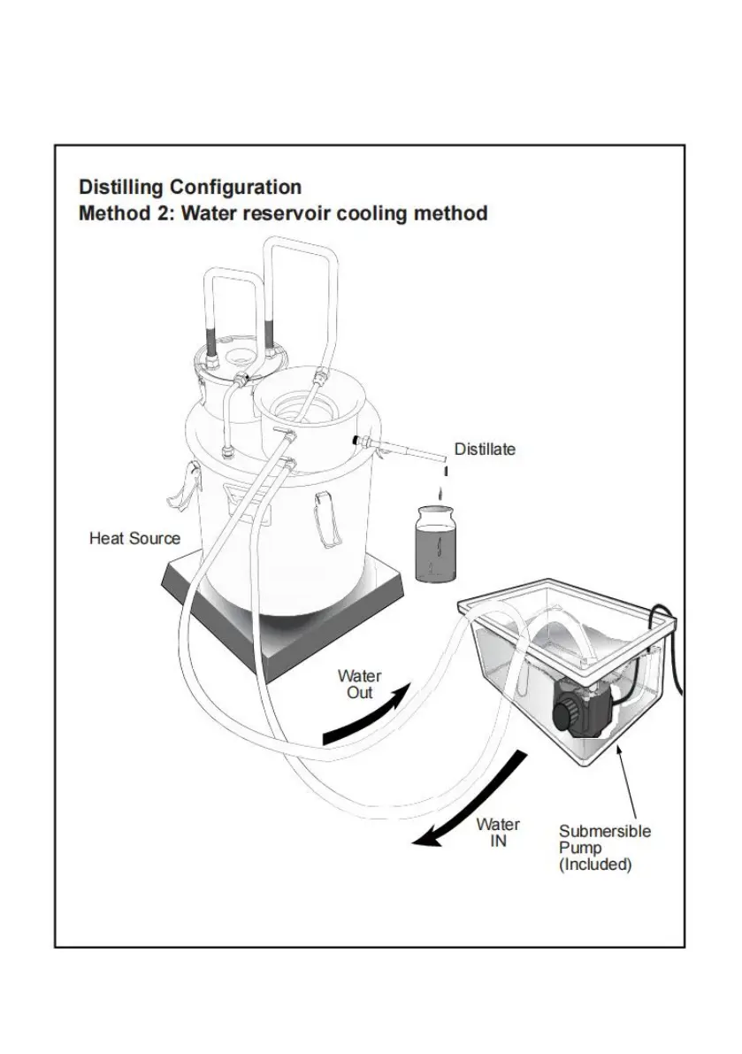 The Condenser's "Water Out" Tube will drain into the container.