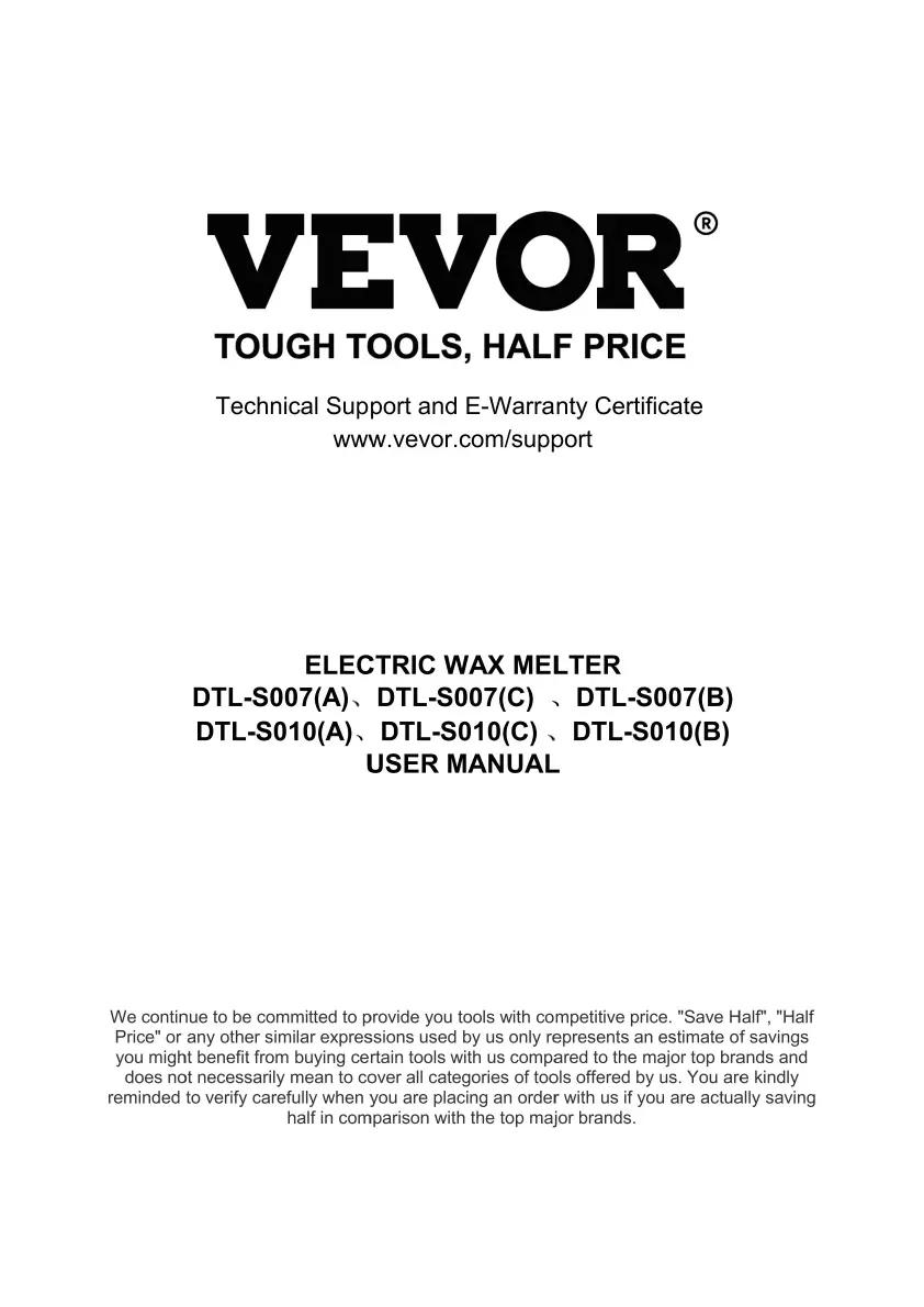 Bekijk gratis de handleiding van Vevor DTL-S010B, stel vragen en lees de antwoorden op veelvoorkomende problemen, of gebruik onze assistent om sneller informatie in de handleiding te vinden of uitleg te krijgen over specifieke functies.