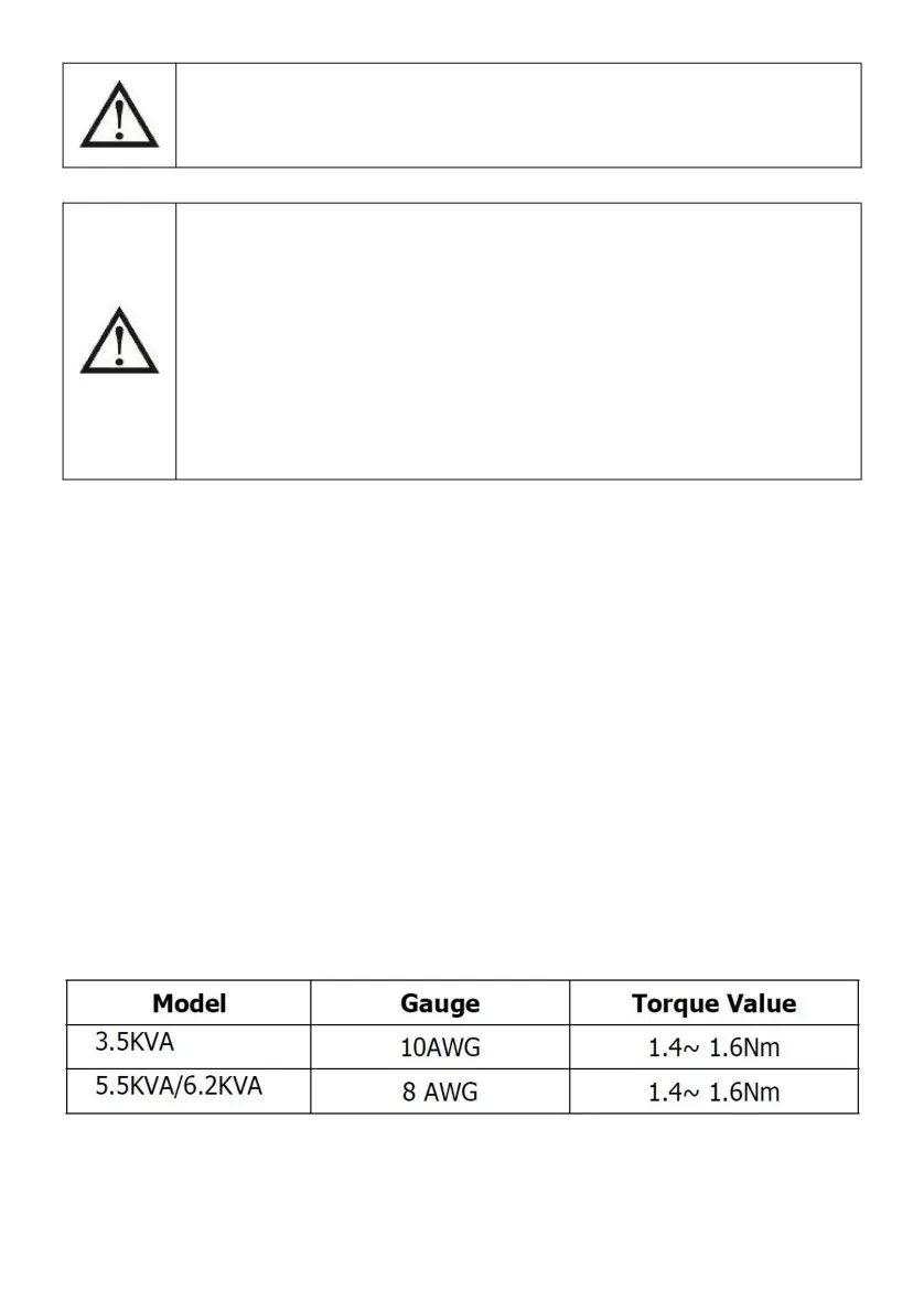 verringern, verwenden Sie bitte die unten empfohlene Kabelgröße.