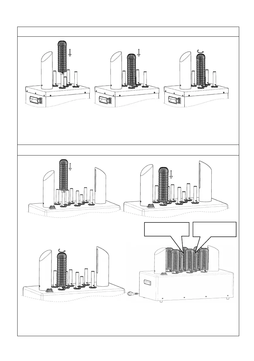 Assemble brushes handle onto drive shaft base, rotate it anti-clockwise to