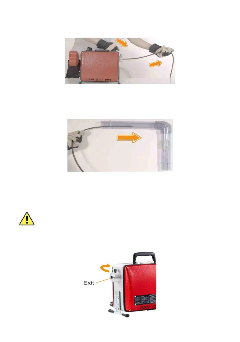 while guiding the cable down the pipeline. Be cautious not to force the cable, as