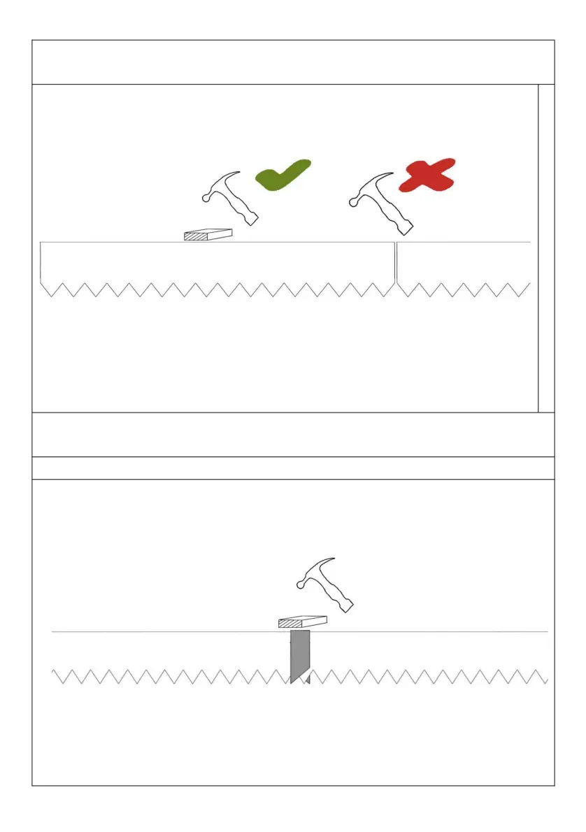 OBS: Placera en träbit över metallkanten när du slår med en hammare