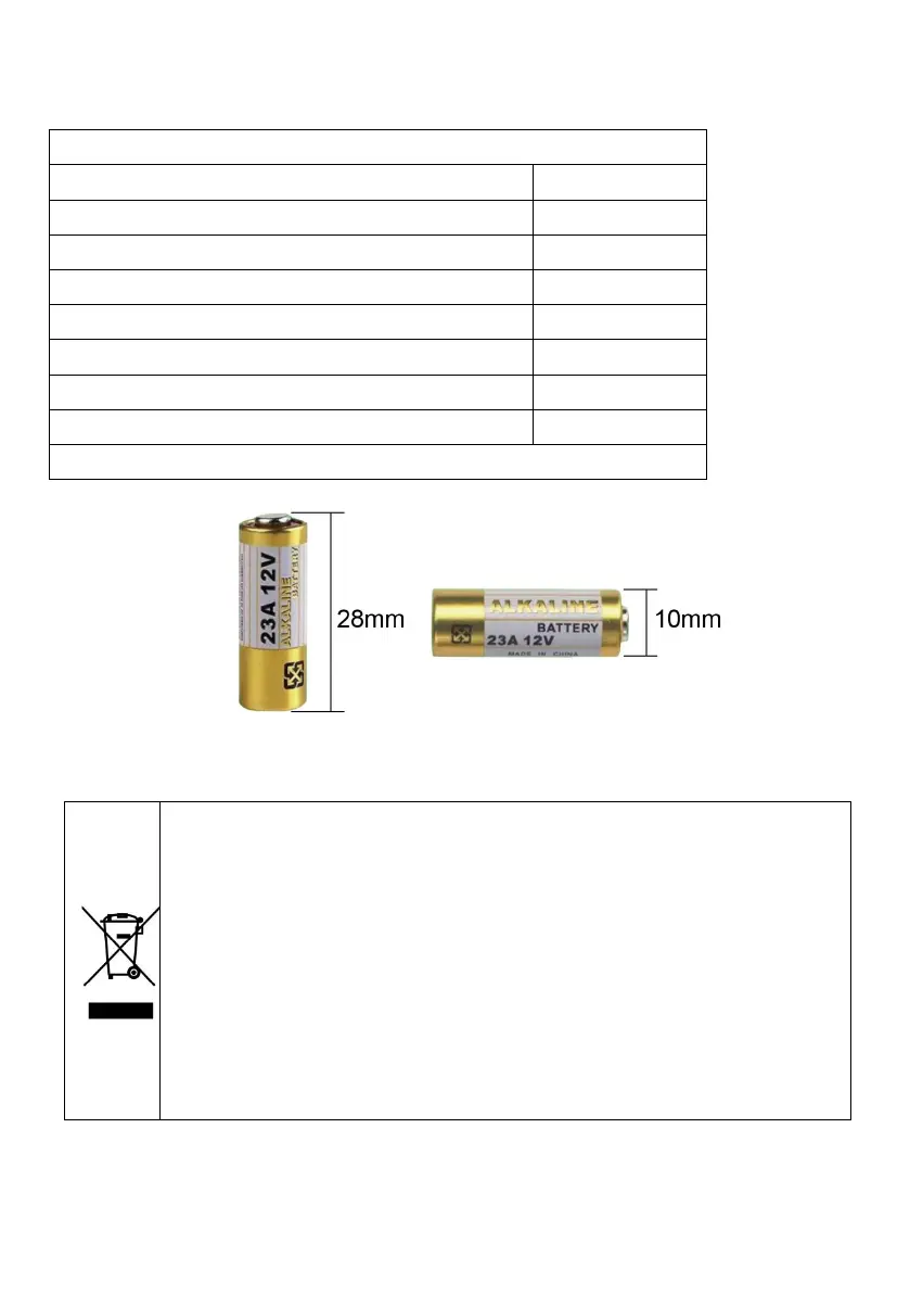 Specifiche della batteria richieste: 23A / 12V , Numero: 1