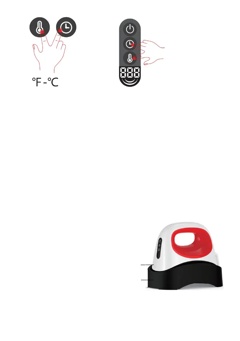 przełączyć jednostkę temperatury (odczekaj 3 sekundy, aby zapisać