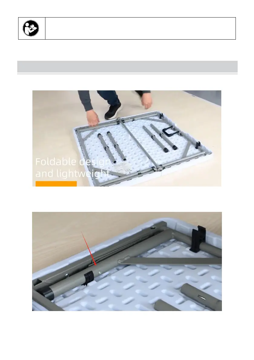 2. Otwórz cztery nóżki stołu, jak pokazują strzałki na poniższym obrazku: