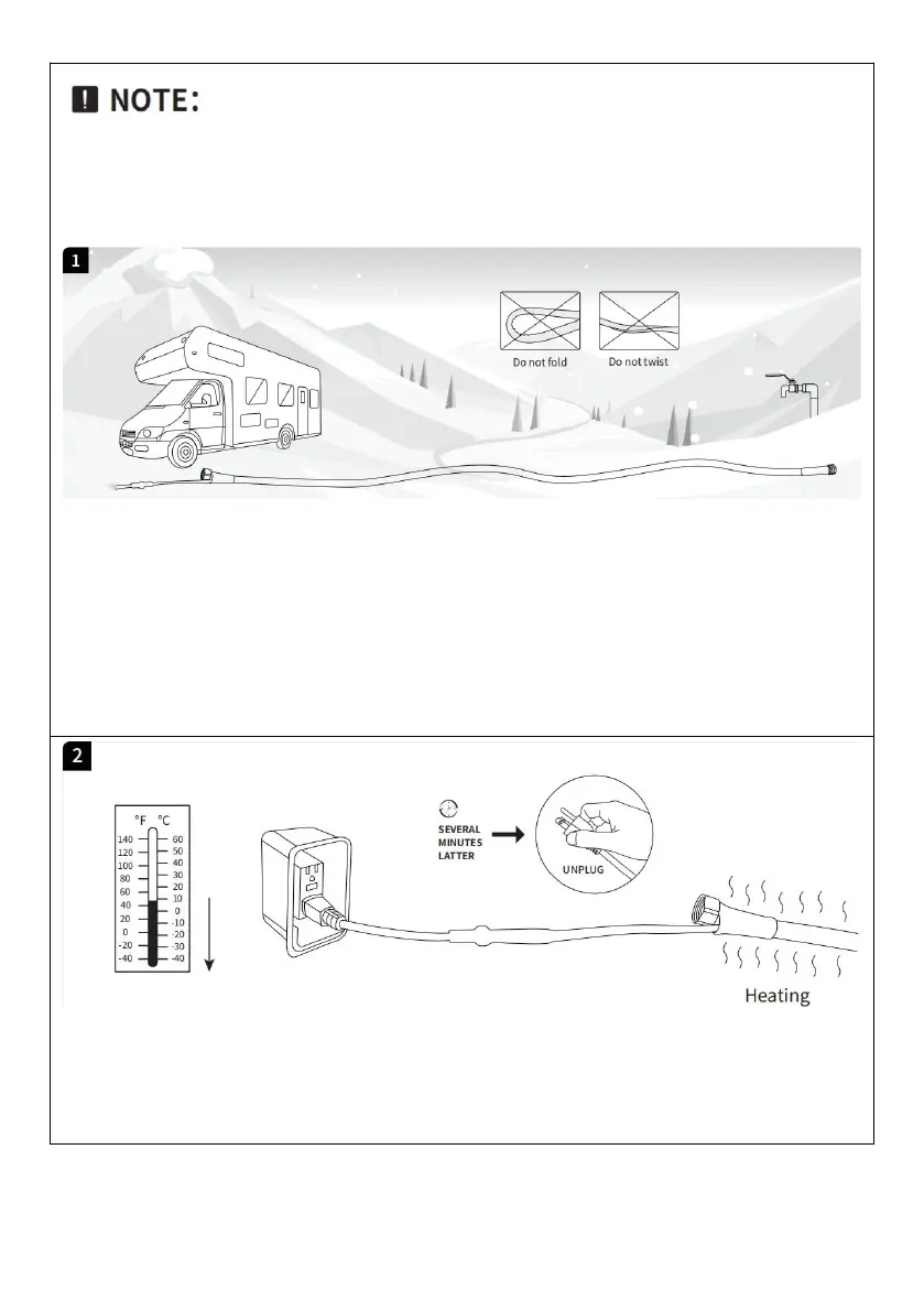The Heated water hose offers freeze protection down to -40℉ (-40℃). And it only