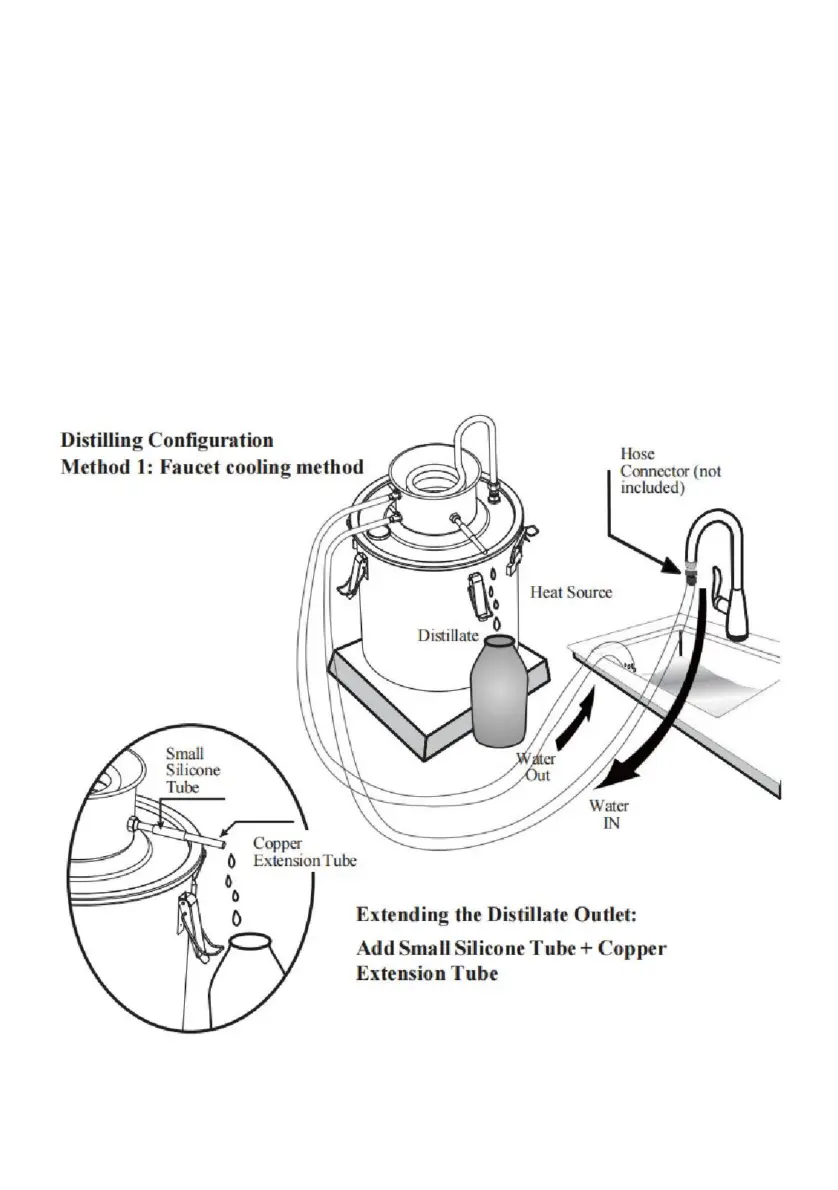 in i kondensorn kyler destillatet som strömmar genom kopparslingan. Det finns två