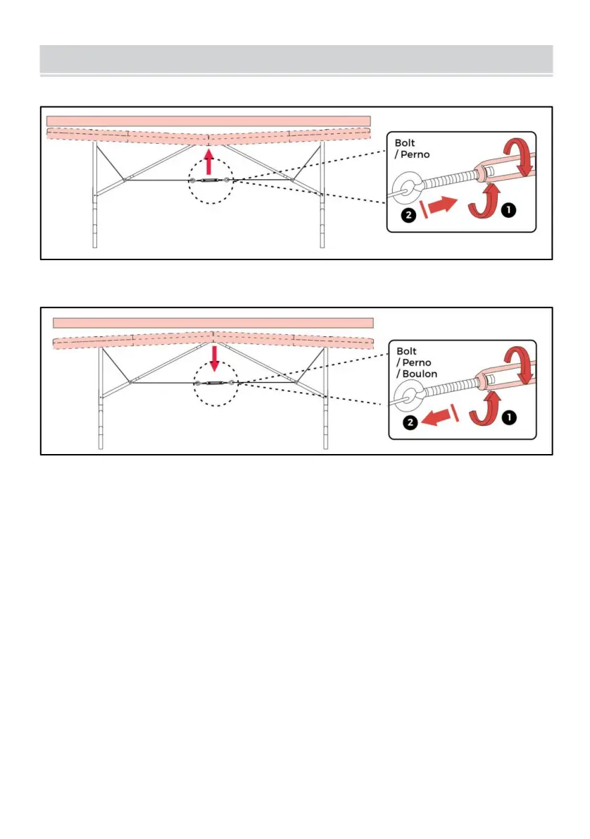 1. Jeżeli blat stołu jest wklęsły, dokręć śruby 1 i 2.
