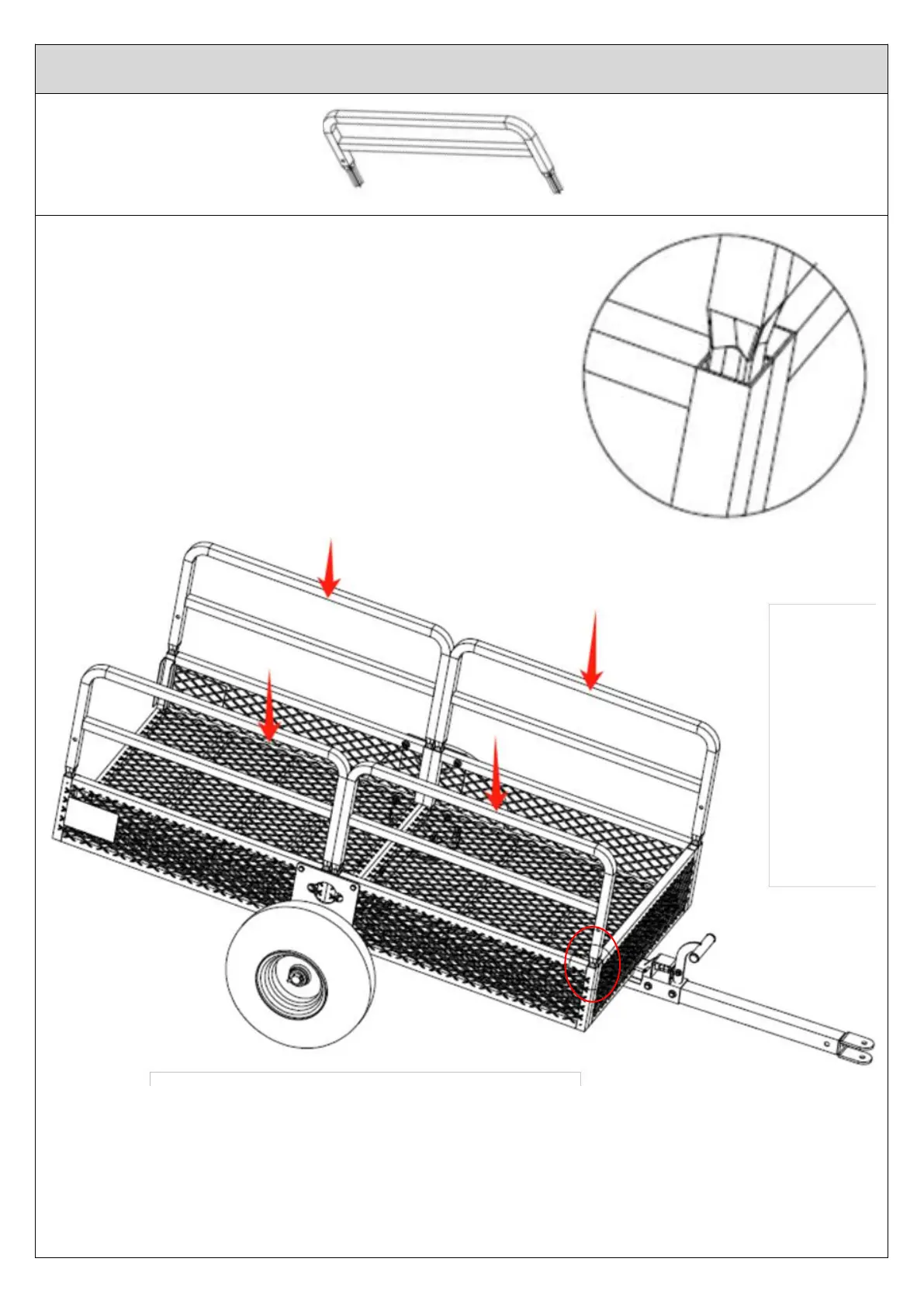 Install the 4 Left and right guardrails(No.9) on the left and right sides of the frame.