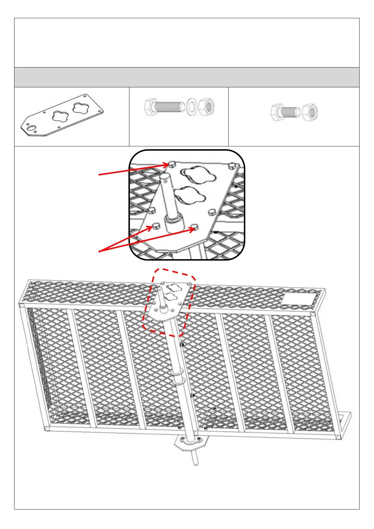 2. Insérez la vis (n° C ) dans les trous de connexion entre l'axe et la plaque fixe. Ensuite, de l'autre