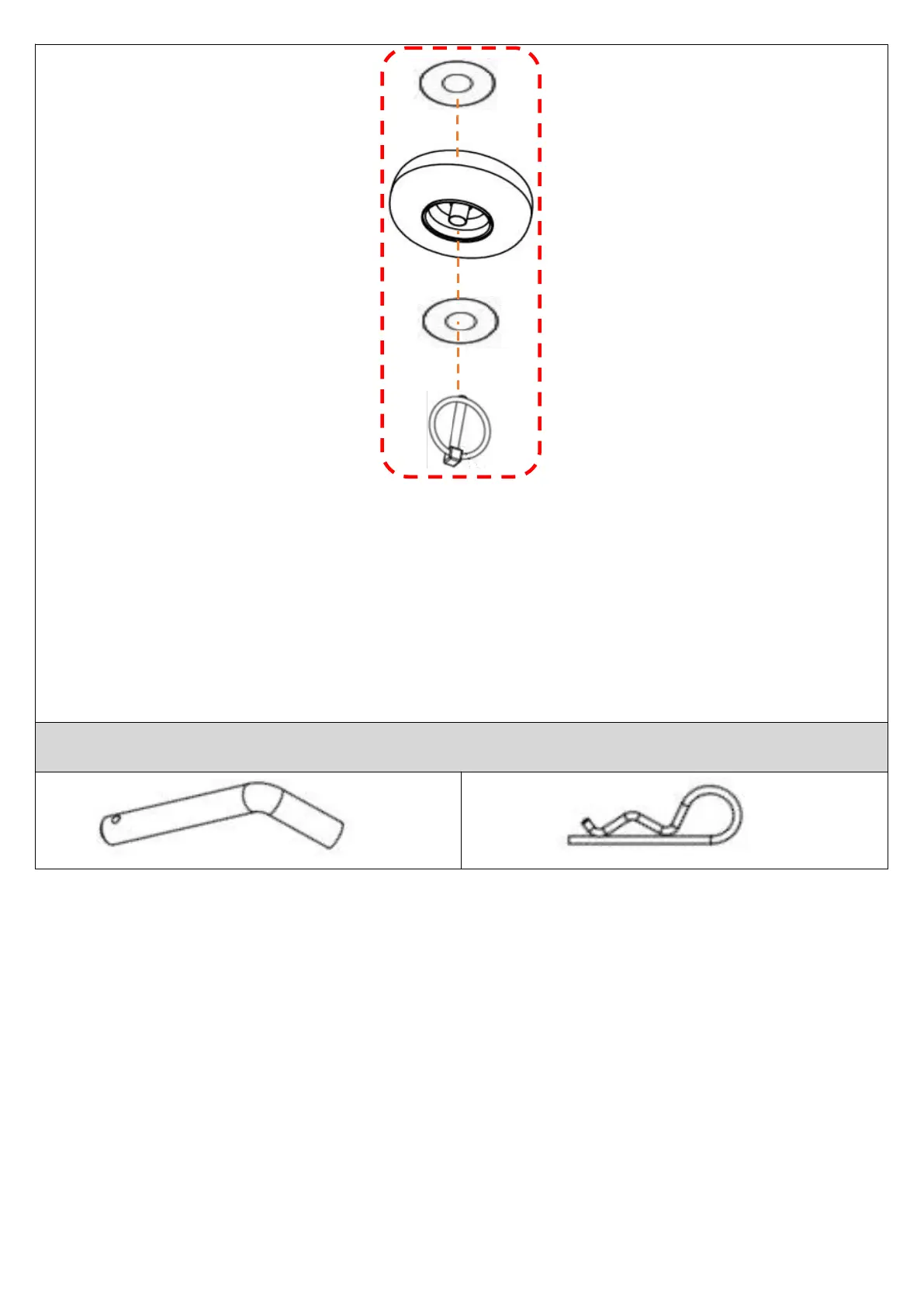 8. Placez d'abord la rondelle ( n° D ), puis insérez la goupille fendue de type O ( n° F ) dans le trou