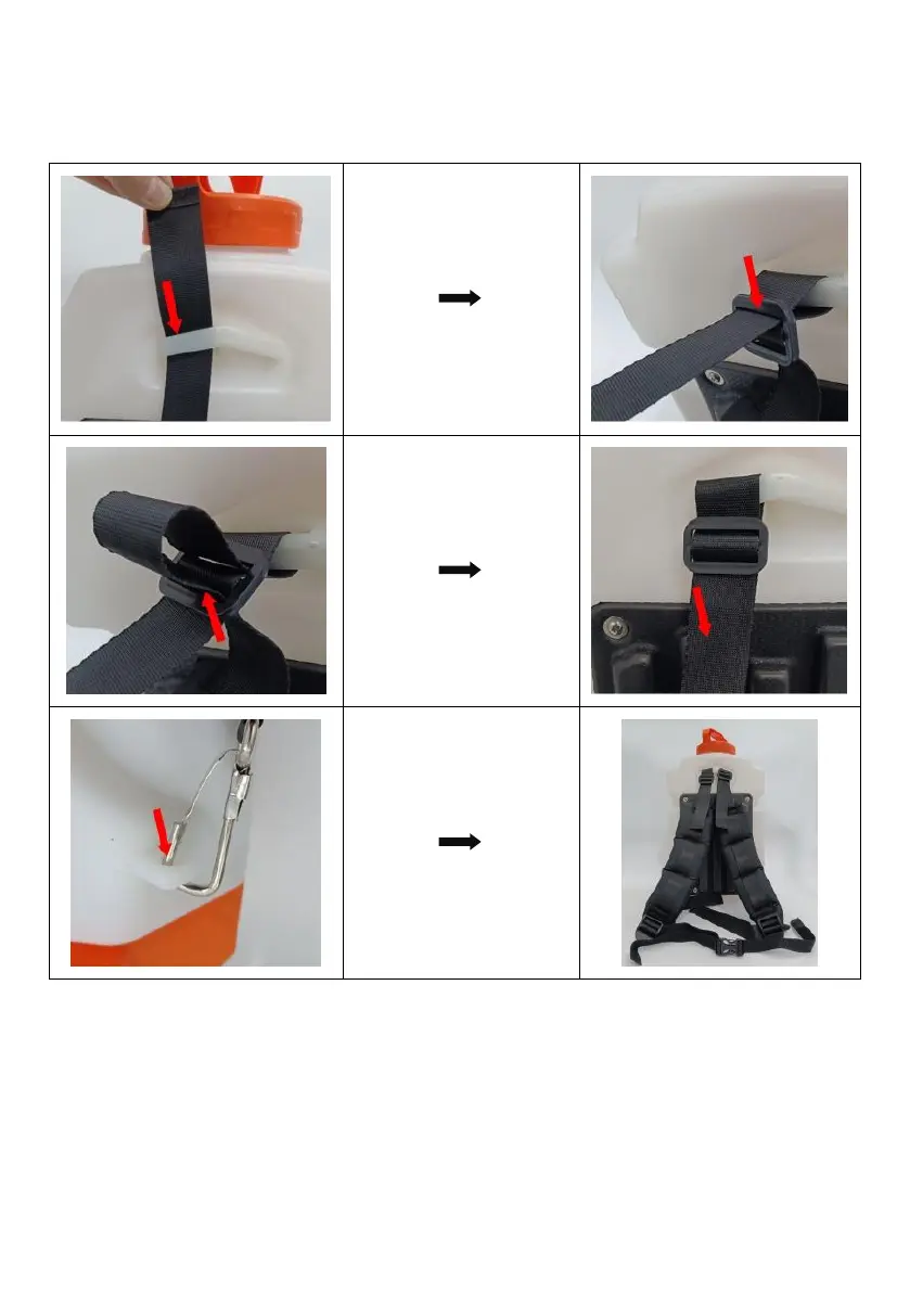 1. Insert the belt into the hole of sprayer, insert the belt into the inside of buckle,