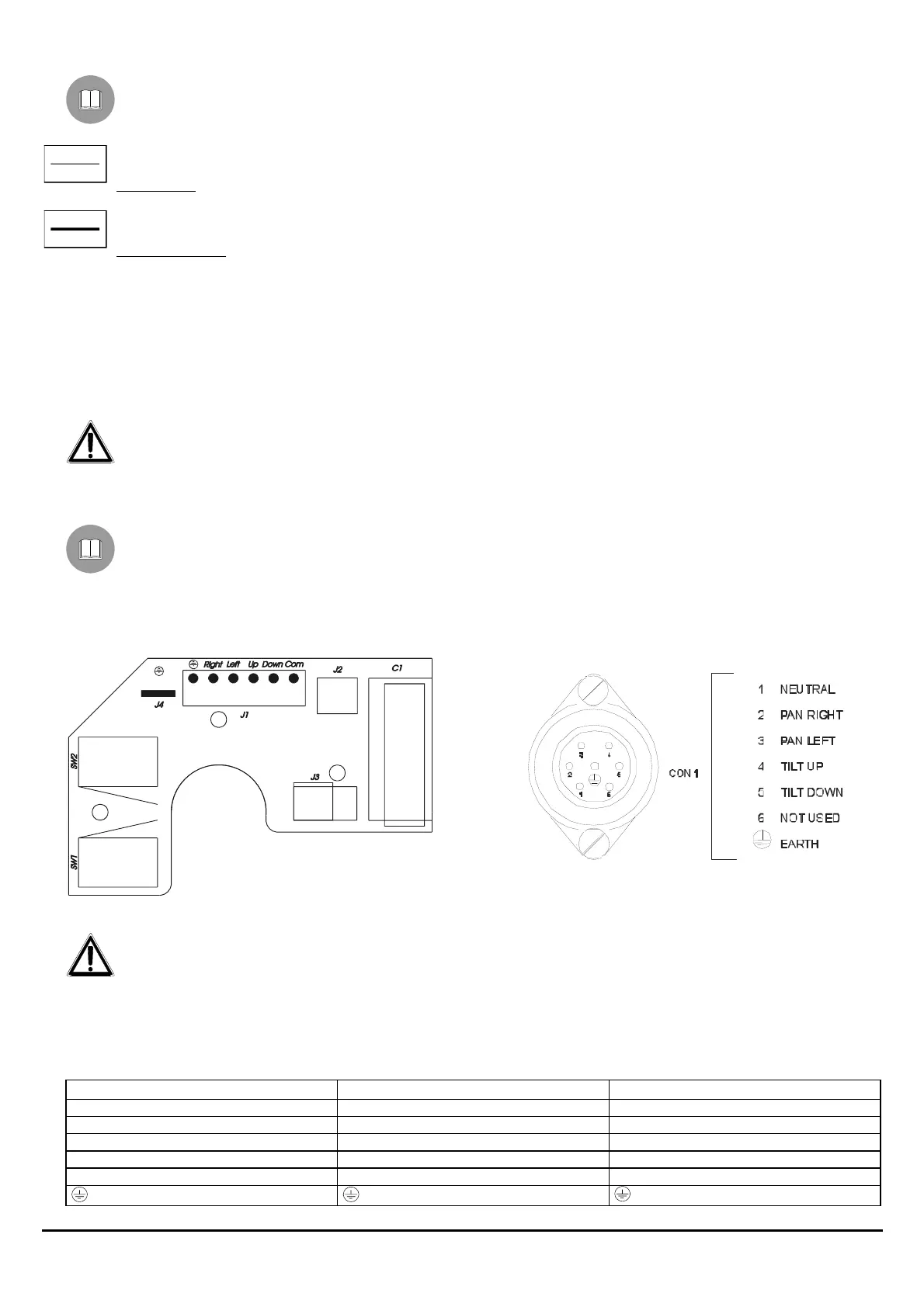 Connection to the receiver Terminal block J1 (Pan & Tilt) 6+1 poles connector