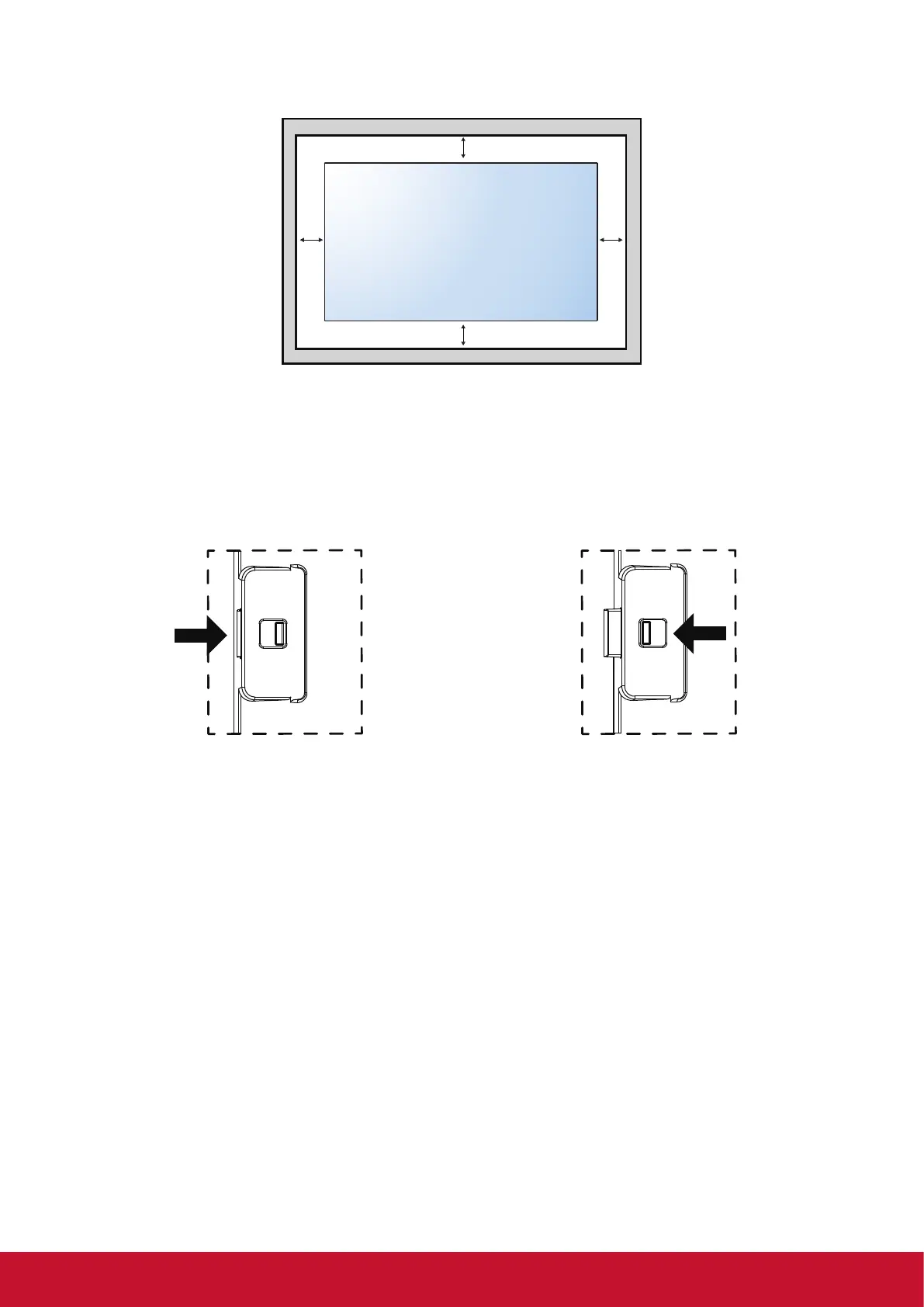 To allow heat to disperse, leave space between surrounding objects as shown in the diagram below.