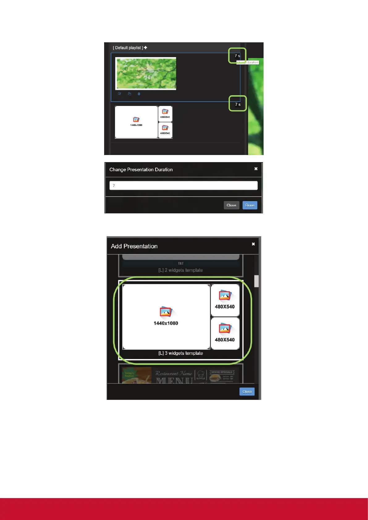 6. Presentation – Change duration: If you have more than two presentations in the playlist, you can