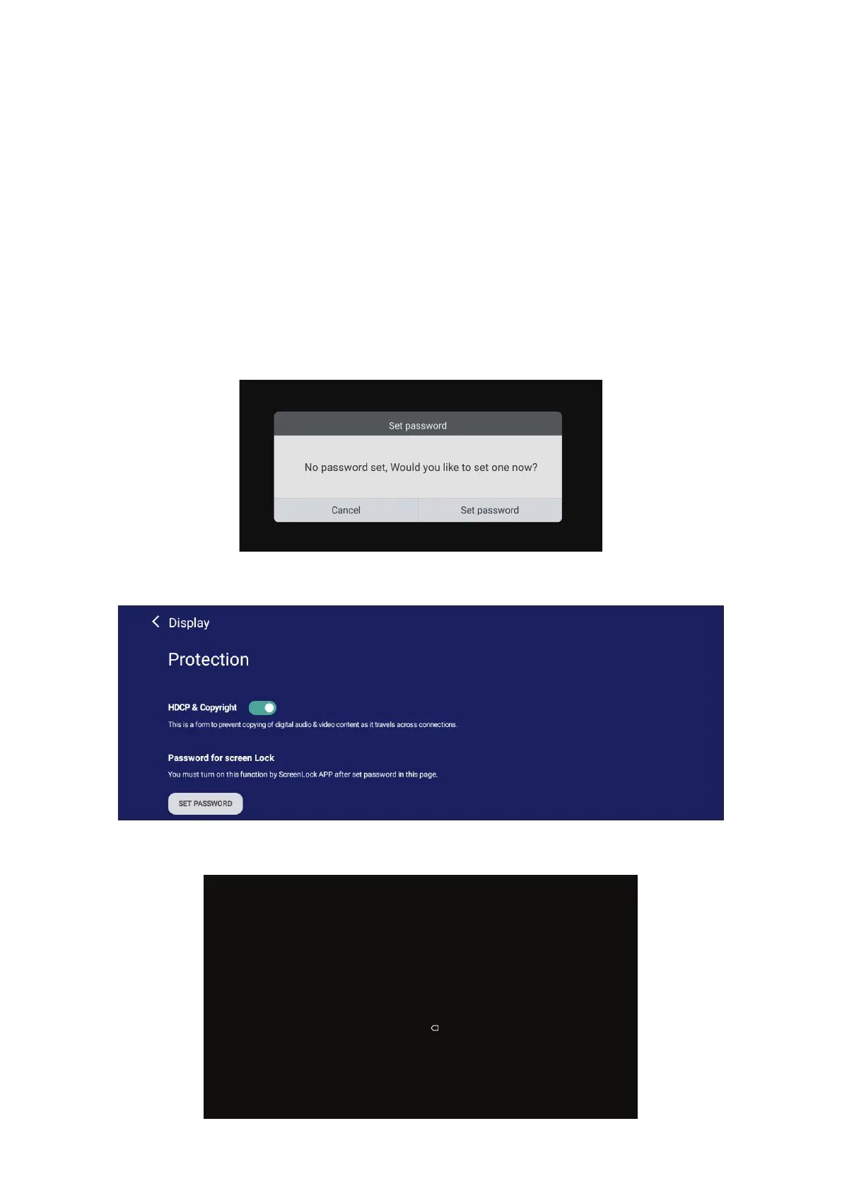 1. Ga naar: Sengs (Instellingen) > Display (Weergave) > Password for screen