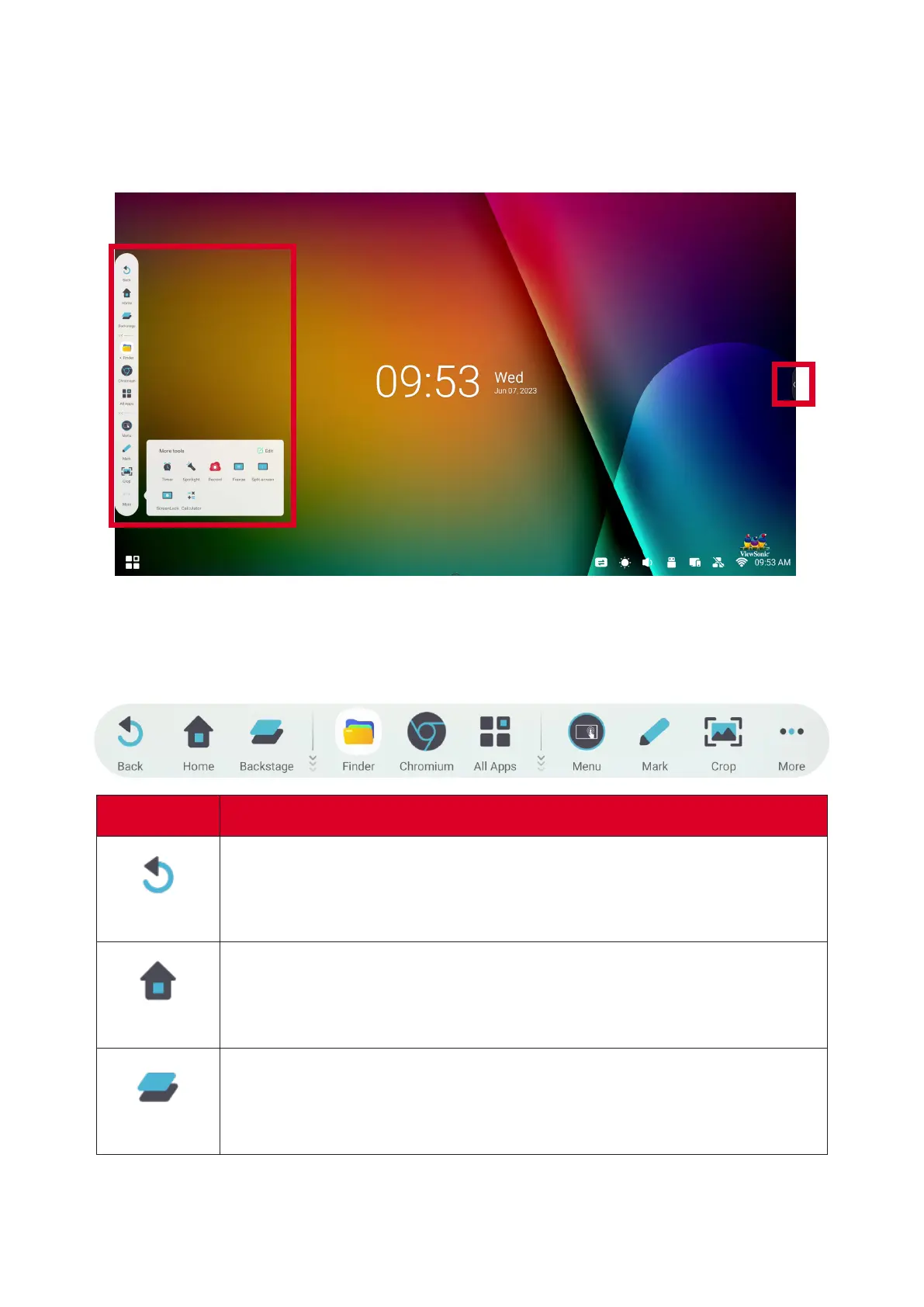 Acveringspictogrammen bevinden zich op de rand van het startprogramma voor