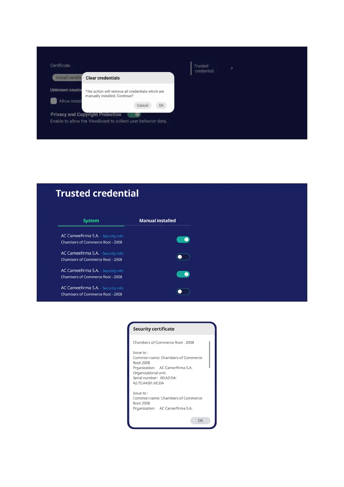 • Onder Trusted Credenals (Vertrouwde cercaten) bekijkt en bewerkt u alle