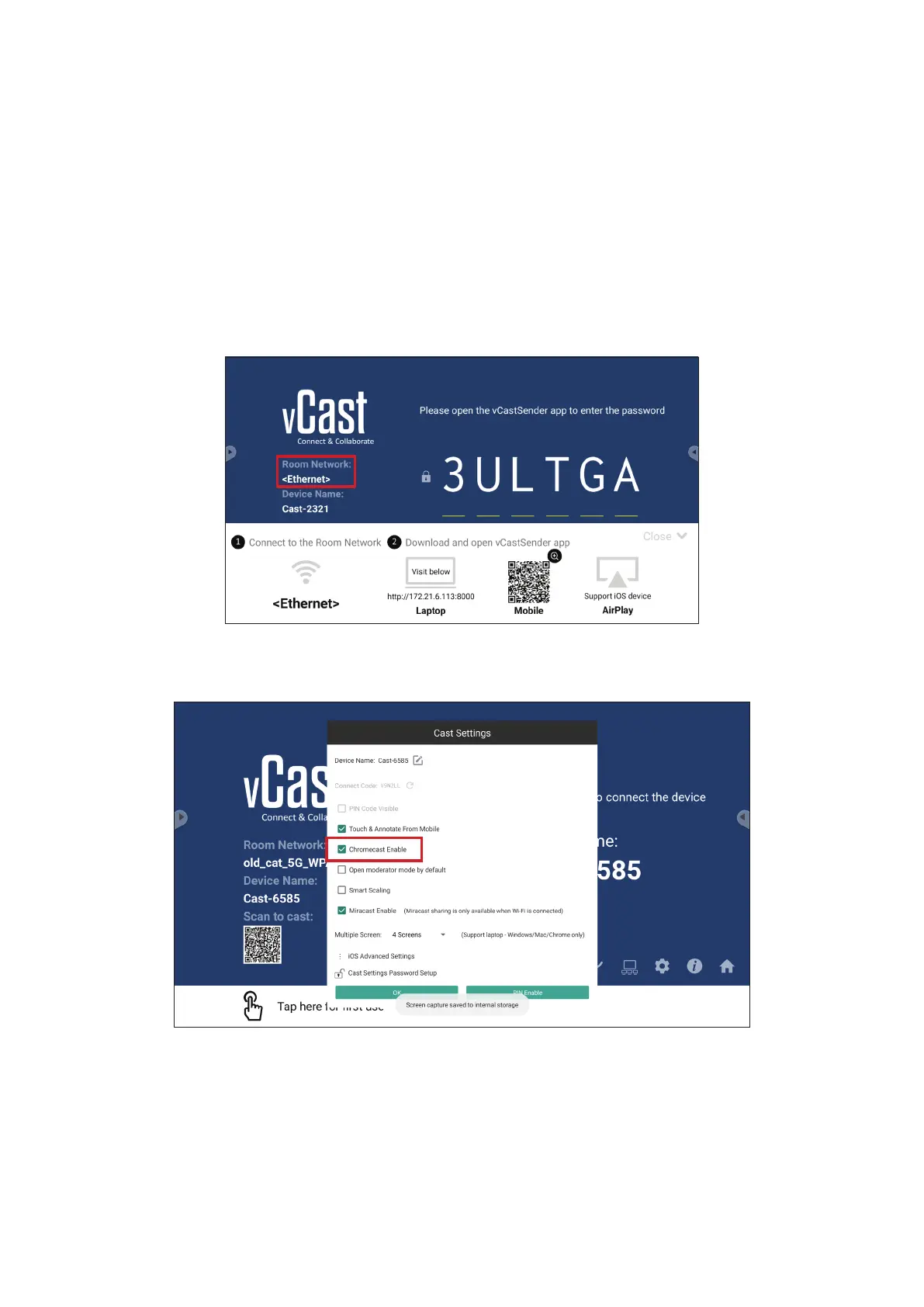 vCast ondersteunt het delen van het systeemeigen Chromecast-scherm via de