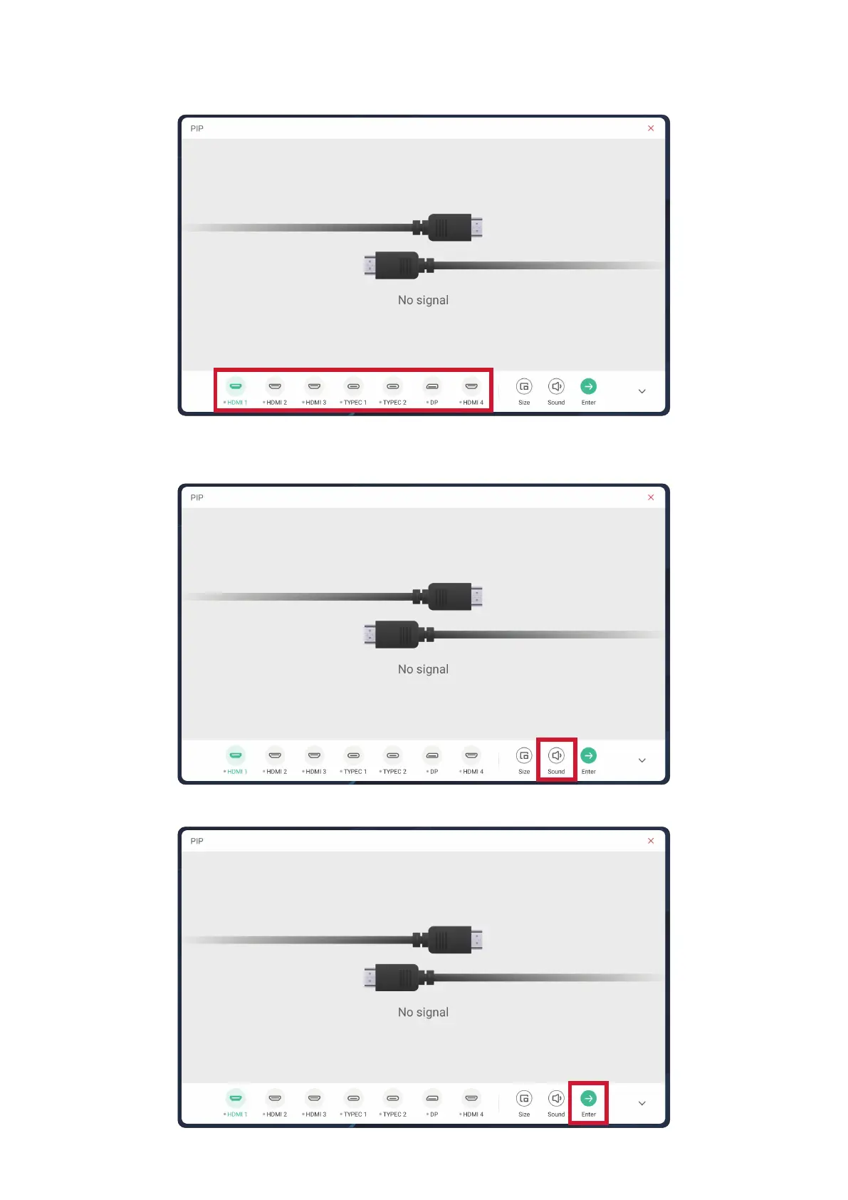 • Voor het wijzigen van de PIP-ingangsbron selecteert u HDMI 1, HDMI 2, HDMI 3,