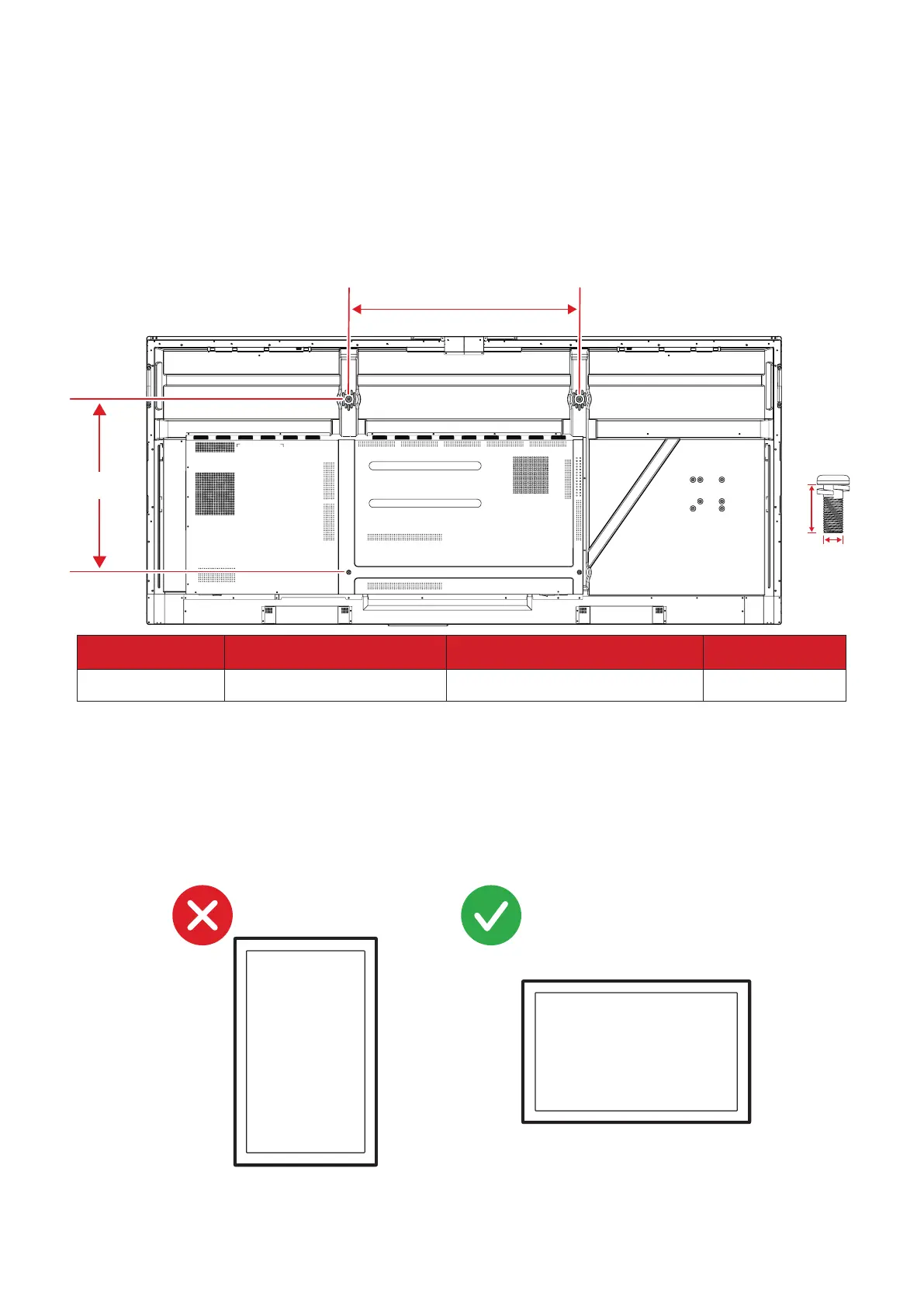 • Monteer het display alleen in liggende richng. Monteer nooit in een