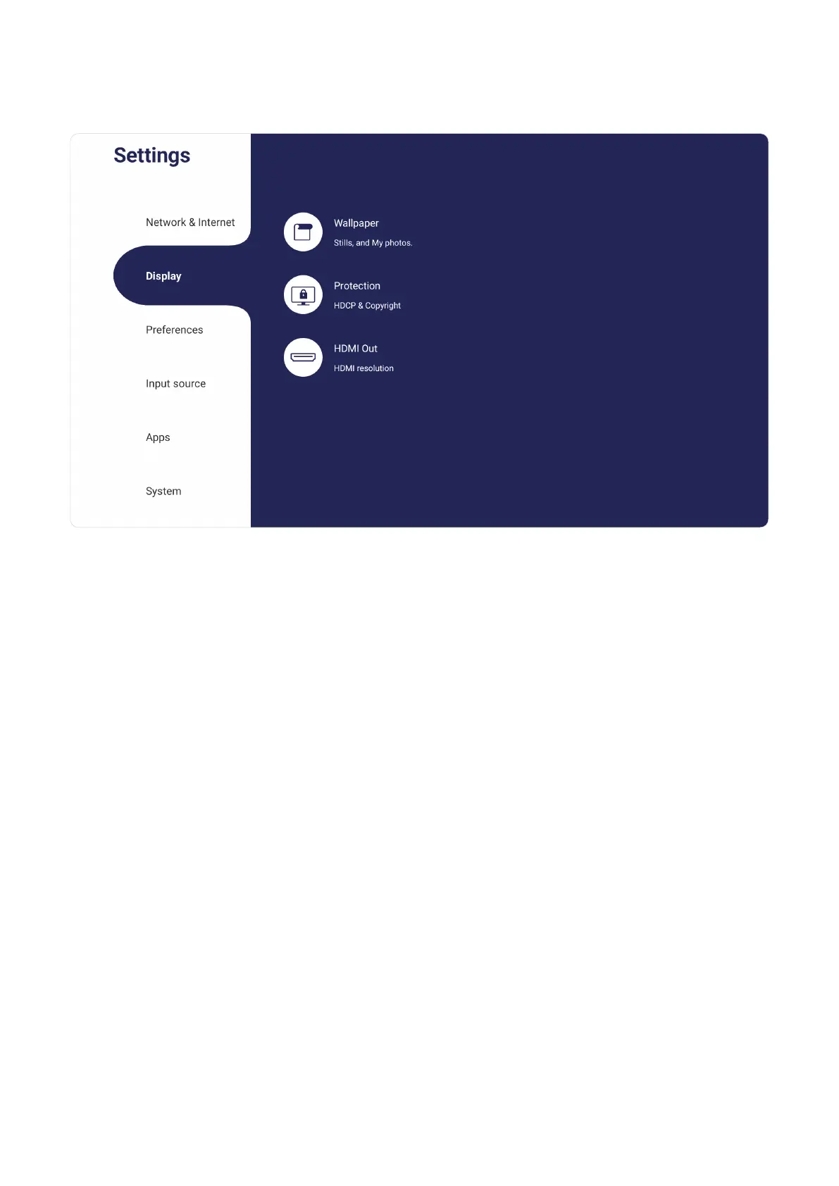 Pas de instellingen voor Achtergrond, Bescherming en HDMI-uitgang aan.