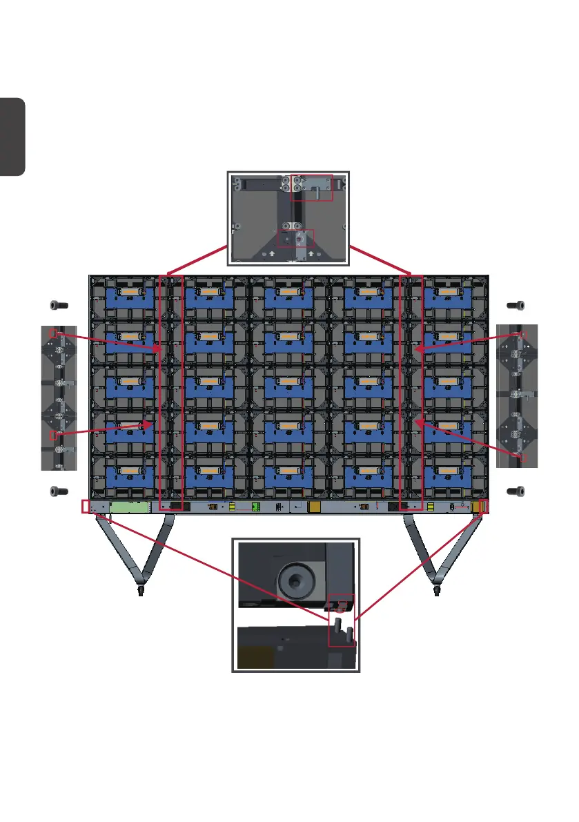 3. 使用隨附的螺絲 (M6x10mm) 將左右機櫃固定至支撐架。