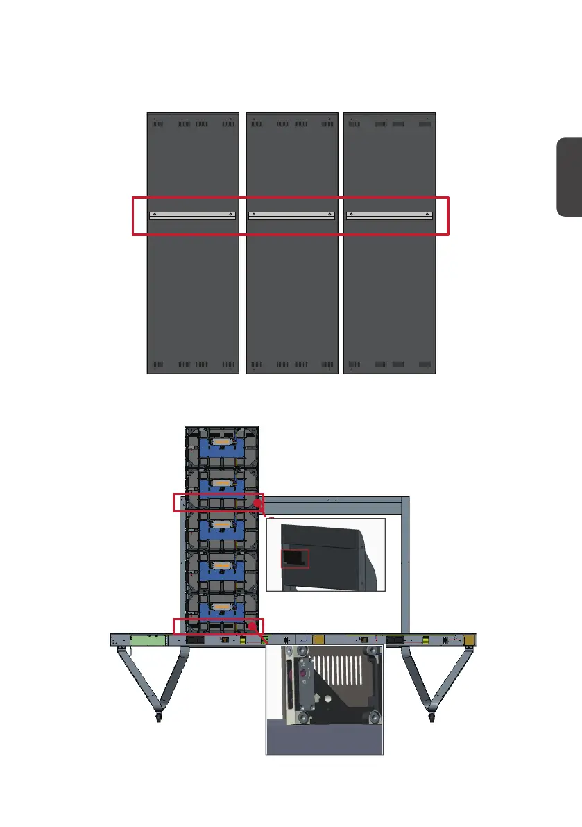 2. 将机壳小心抬升至地板支架上,同时将安装托架固定在顶部横梁的支撑通道内。