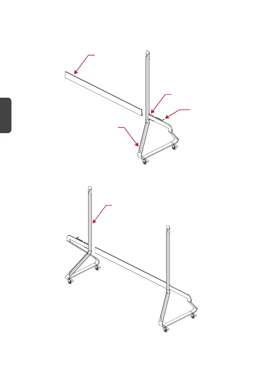 2. Verbinden Sie die rechte Stütze E über zwei (2) Schrauben (M6 x 80 mm) mit der
