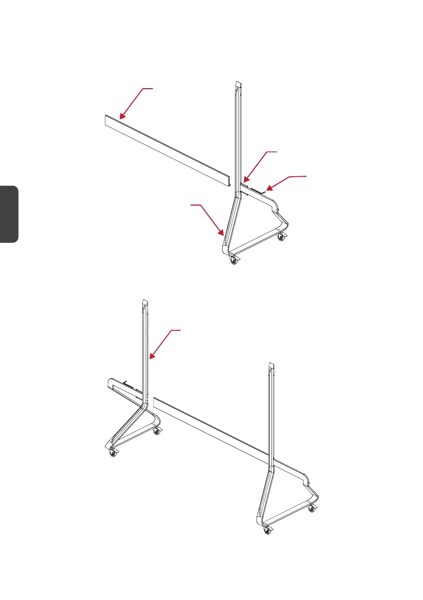 2. Una el soporte derecho "E" a la viga transversal inferior con dos tornillos (2) M6 x