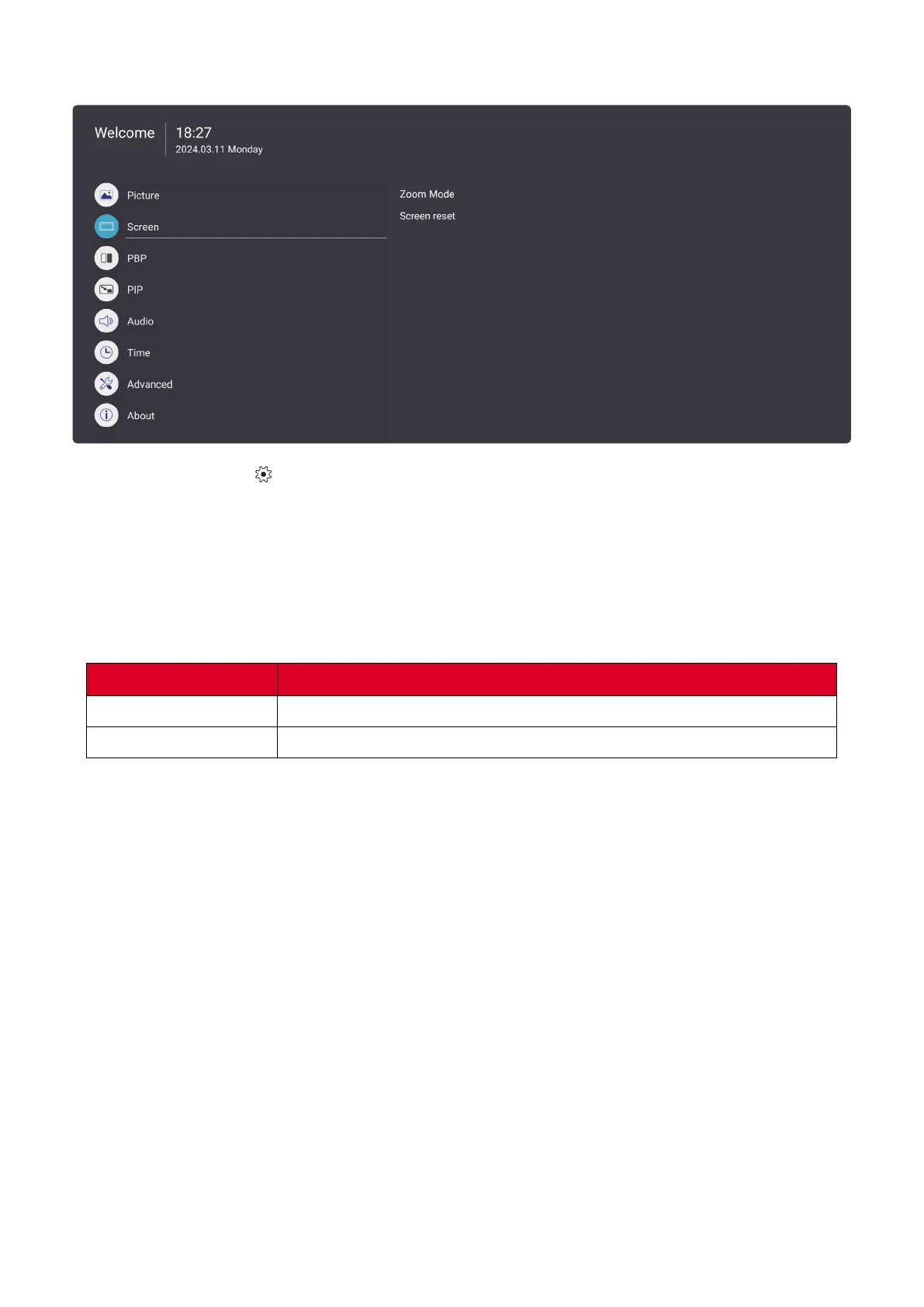 1. Press the MENU ( ) buon on the remote control to display the OSD Menu.