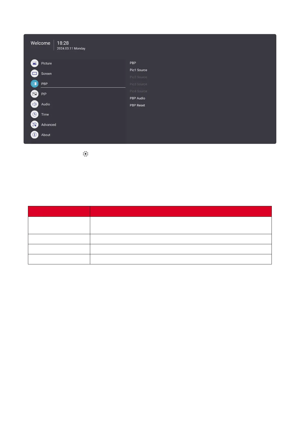 Select the type of PBP screen: Full, Dual, Three-part, Center, or