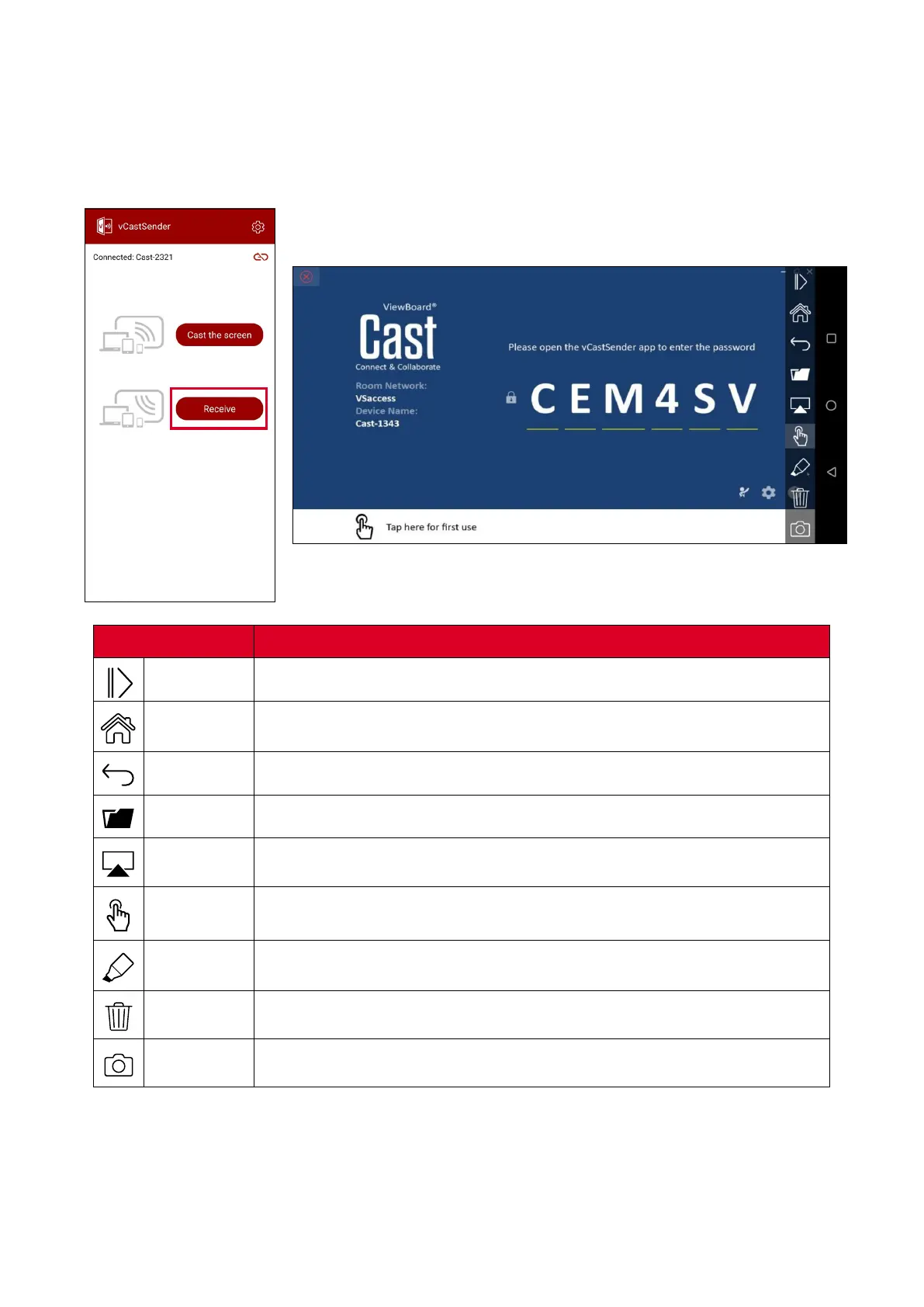 Once connected, select Receive. The Display’s screen will appear on the mobile