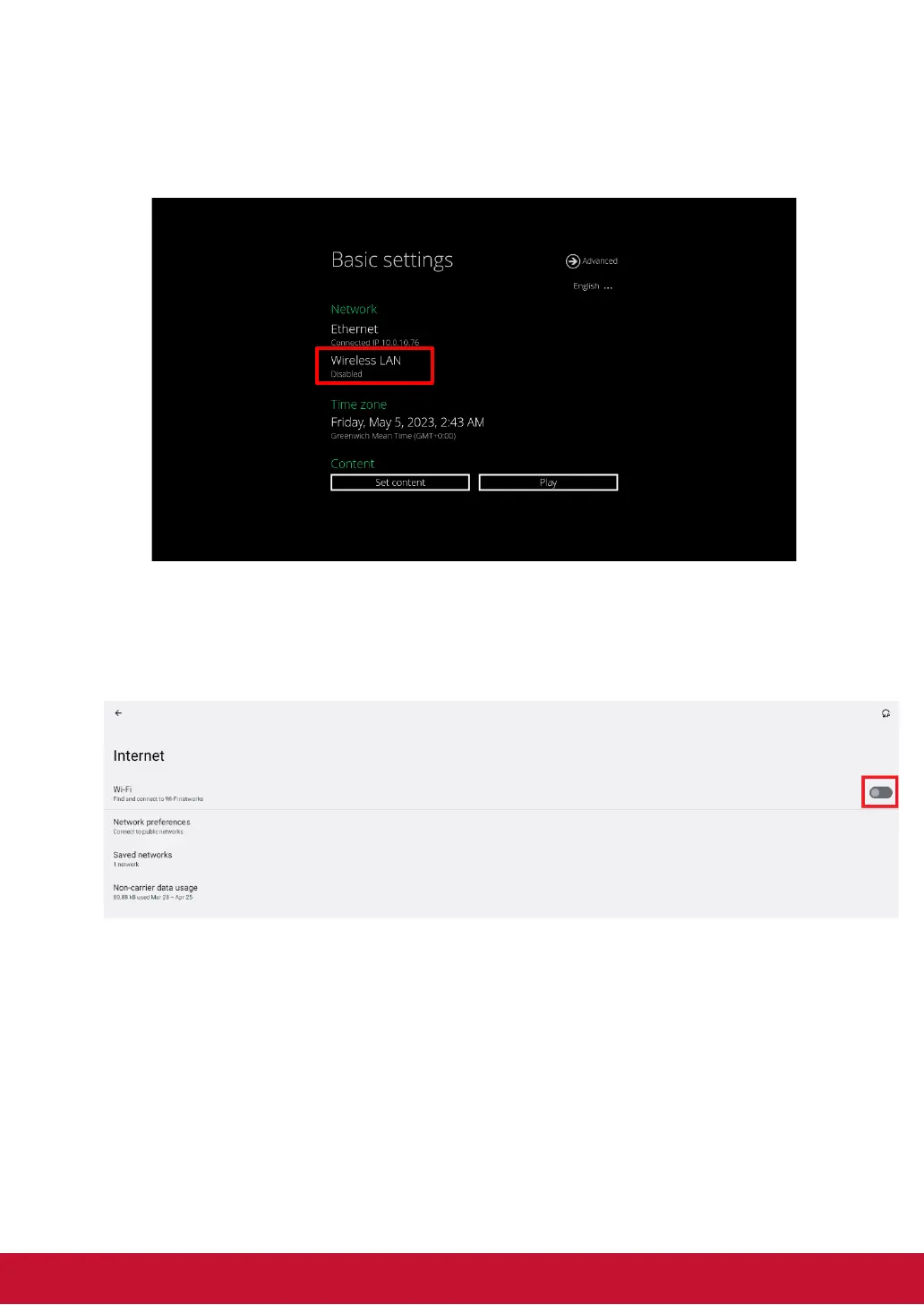 2. Click the ON/OFF button as indicated below to turn the Wireless interface
