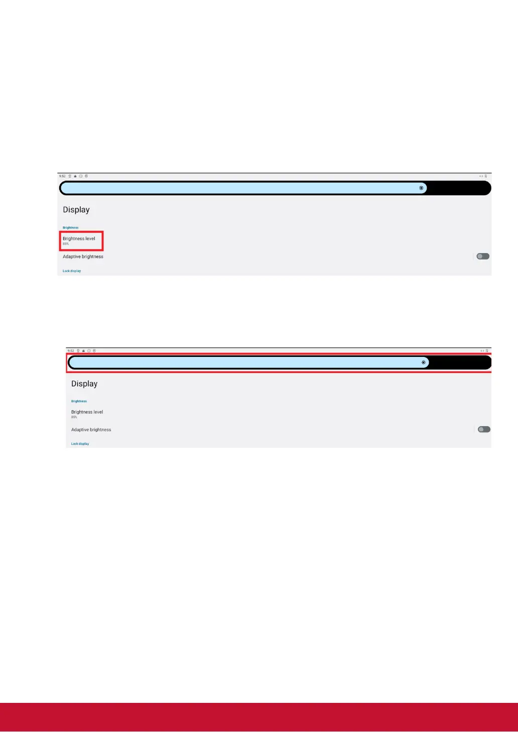 The default brightness is set to maximum, and it can be adjusted in the Display
