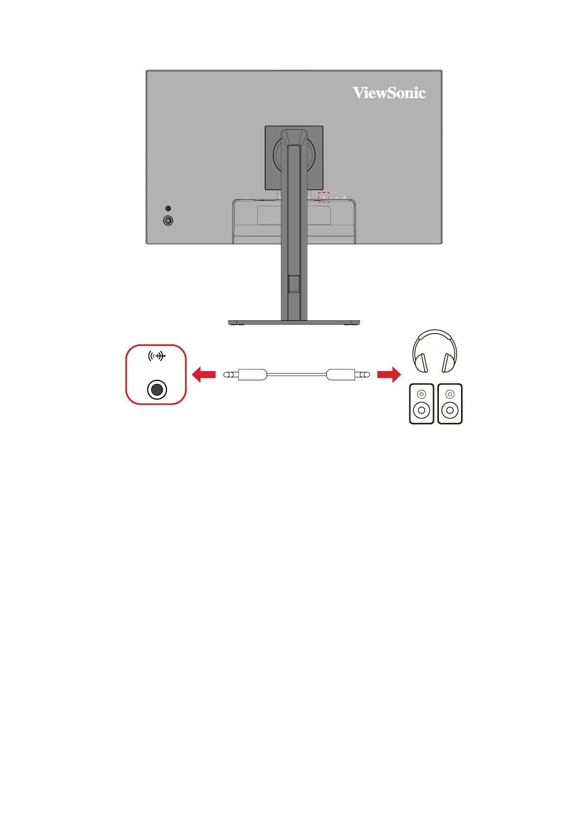 Plug the audio jack of the audio device into the Audio Out port of the monitor.
