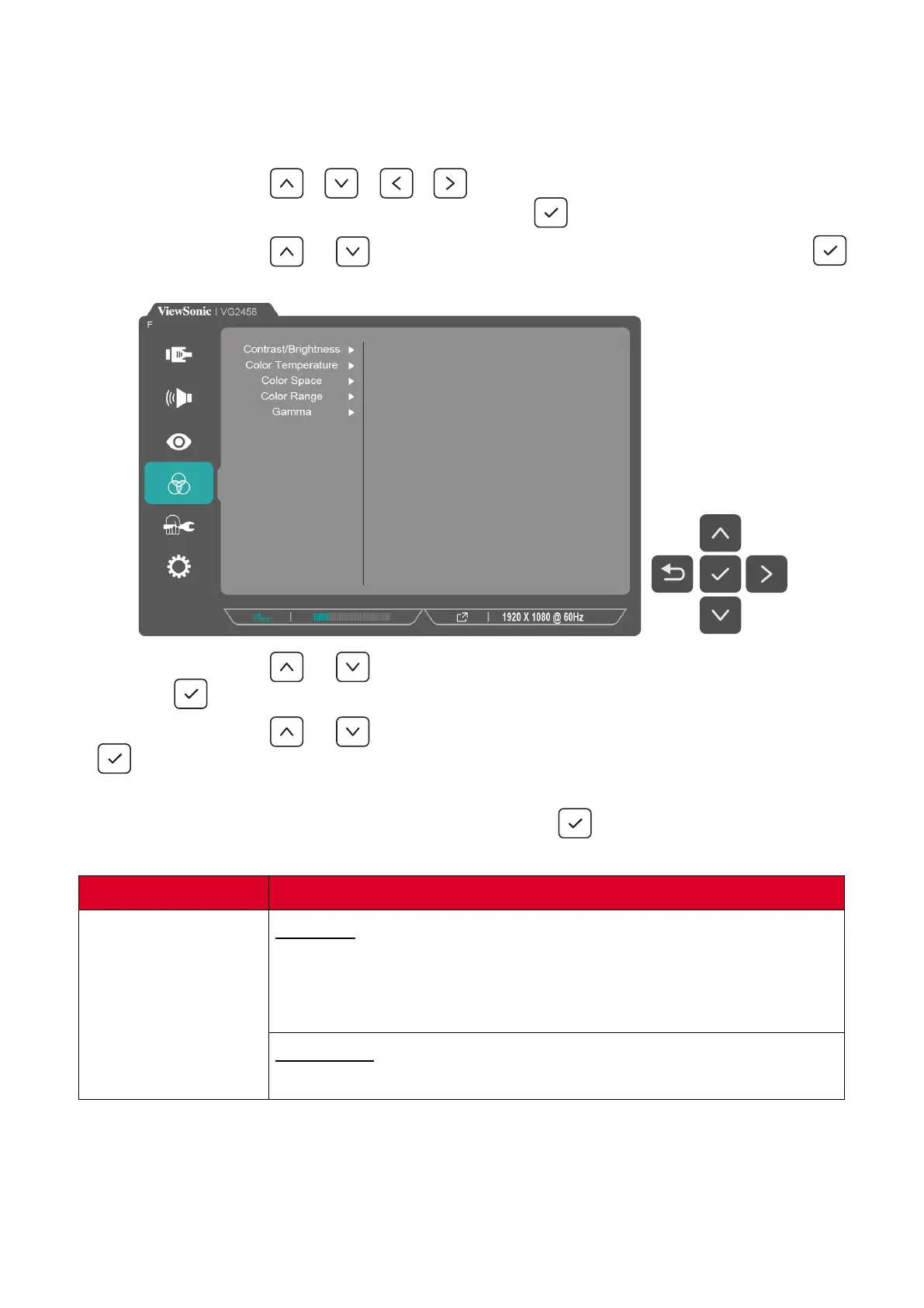 Bekijk gratis de handleiding van Viewsonic VG2458, stel vragen en lees de antwoorden op veelvoorkomende problemen, of gebruik onze assistent om sneller informatie in de handleiding te vinden of uitleg te krijgen over specifieke functies.