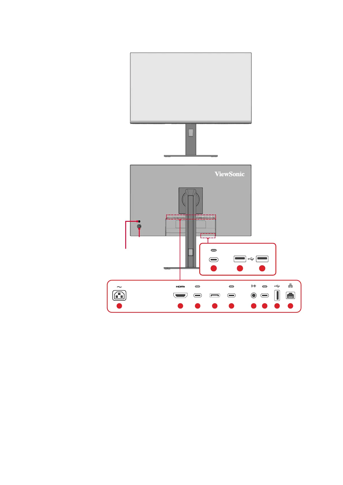 1. AC IN 2. HDMI 3. USB Type C In (Upstream) 4. DisplayPort