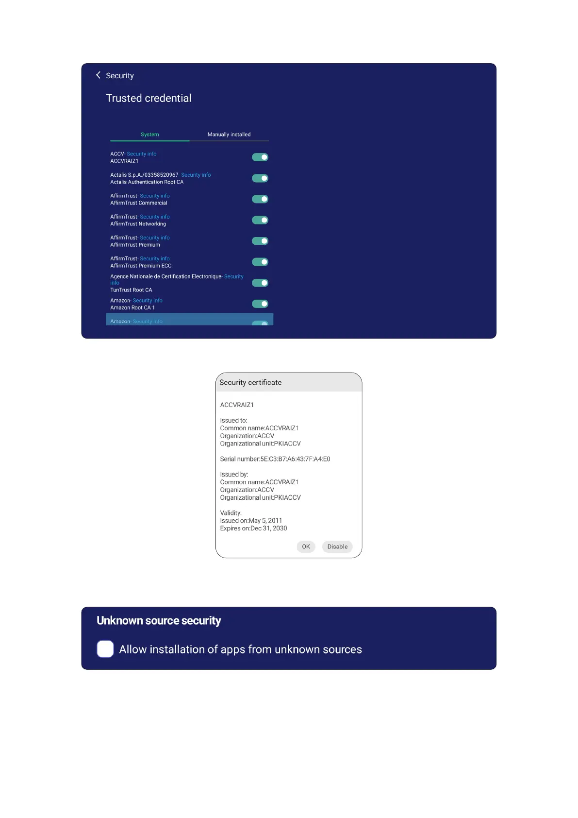 • Allow the installaon of applicaons from unknown sources by selecng the box