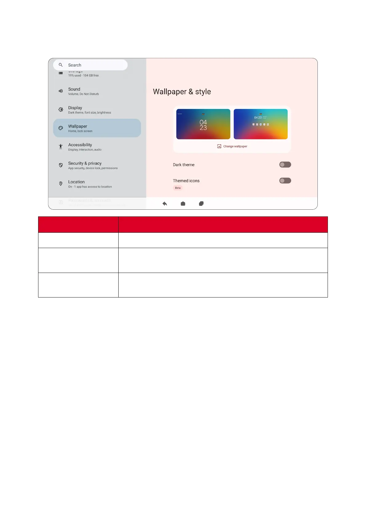 Adjust and personalize the Wallpaper, Colors and theme of the ViewBoard.