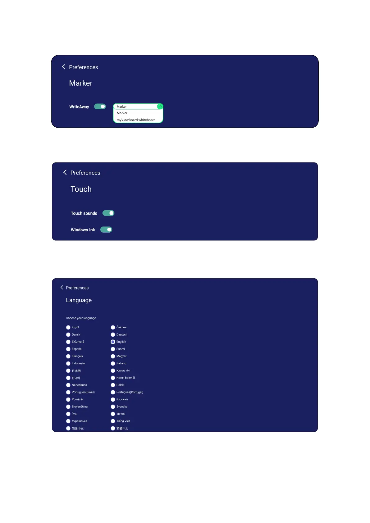Toggle WriteAway On/O for the Marker or myViewBoard whiteboard tool.