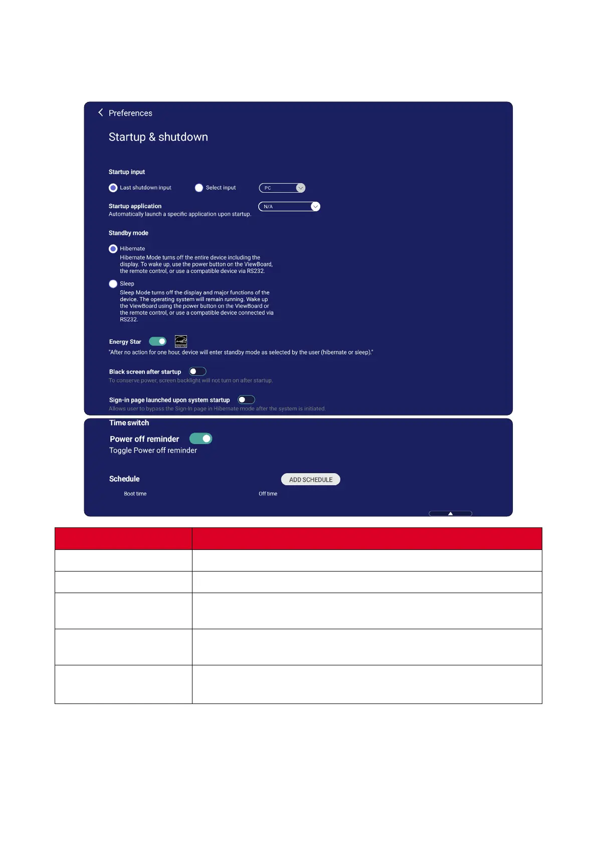 Set the Startup Input, Standby Mode, EnergyStar Mode, Black Screen Aer