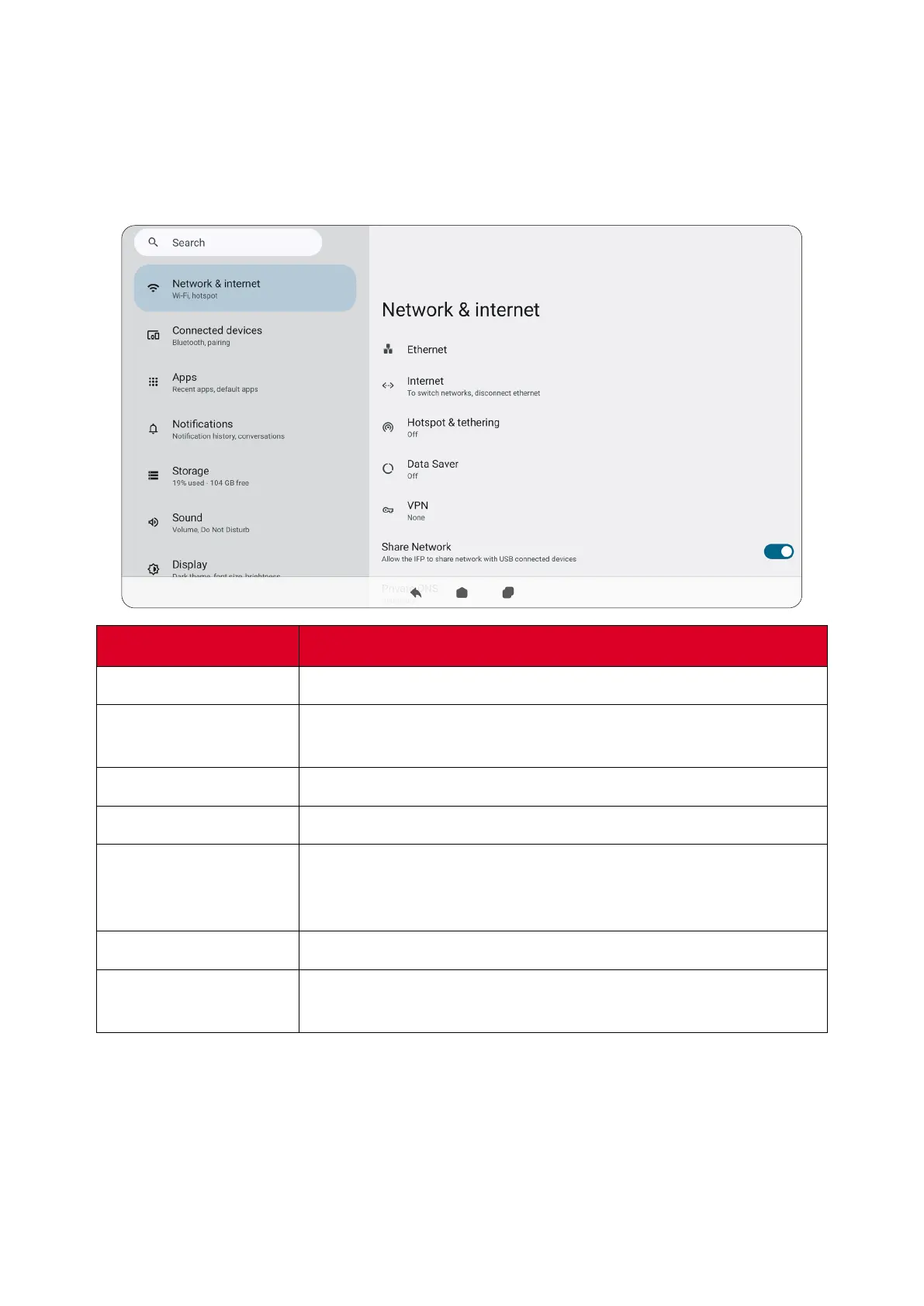 Enable to share the network with other USB connected