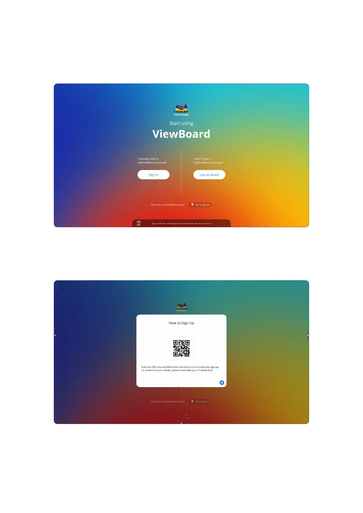 Select the How to Sign Up buon at the boom of the screen, then scan the QR