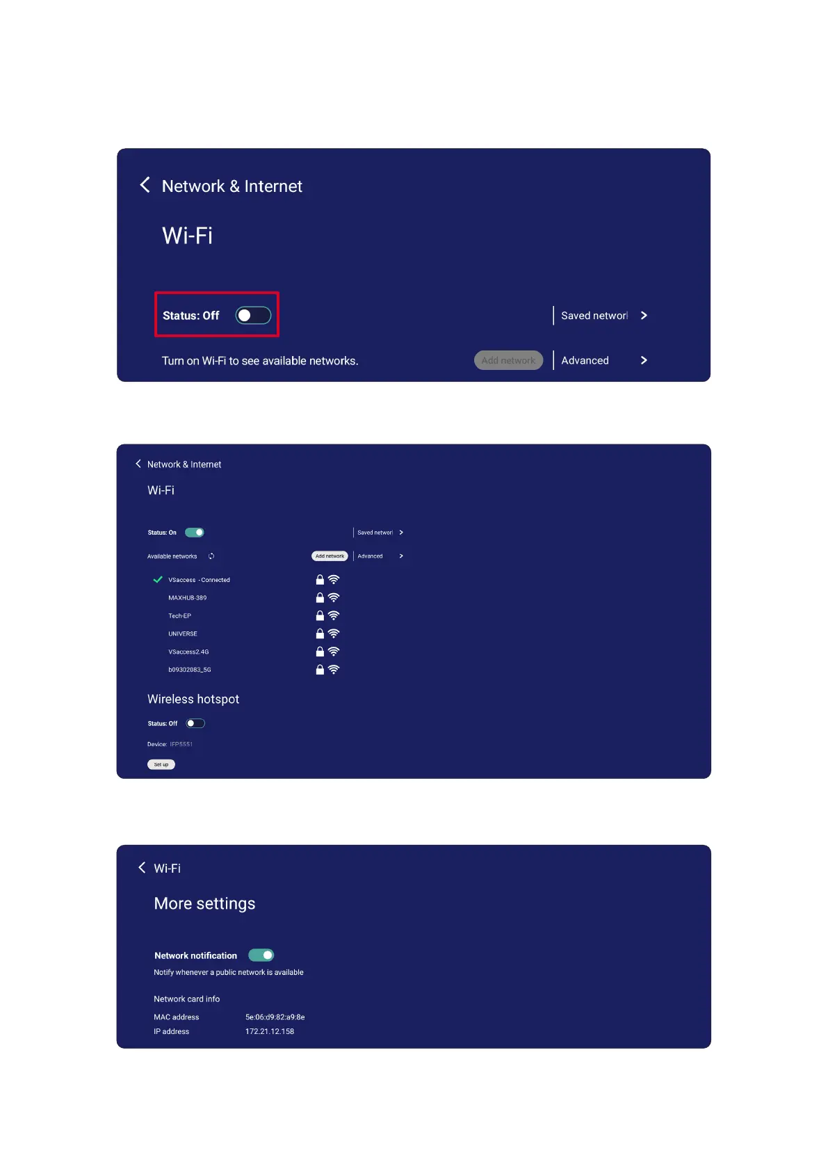 • Once On, you can: Add a Network, view Saved Networks, Refresh the network